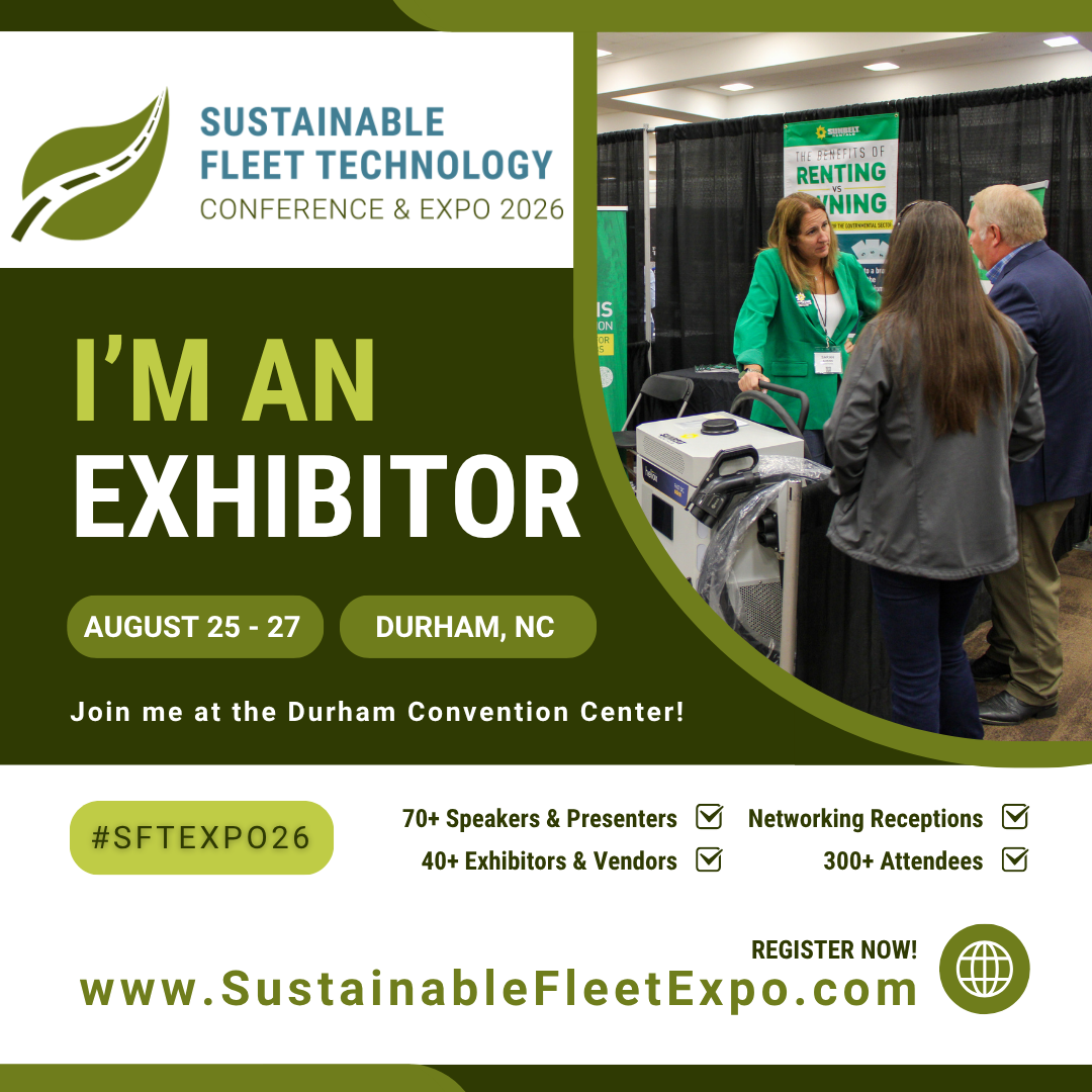 Visit our booth at the Sustainable Fleet Technology Conference & Expo, hosted by the @NC Clean Energy Technology Center! [Your organization] is excited to join the hub of companies providing products and services for fleet leaders seeking to grow sustainable fleet practices on August 25-27 in Durham, NC. Sign up to attend before July 10 to save $50 on your registration at www.sustainablefleetexpo.com #SFTexpo26