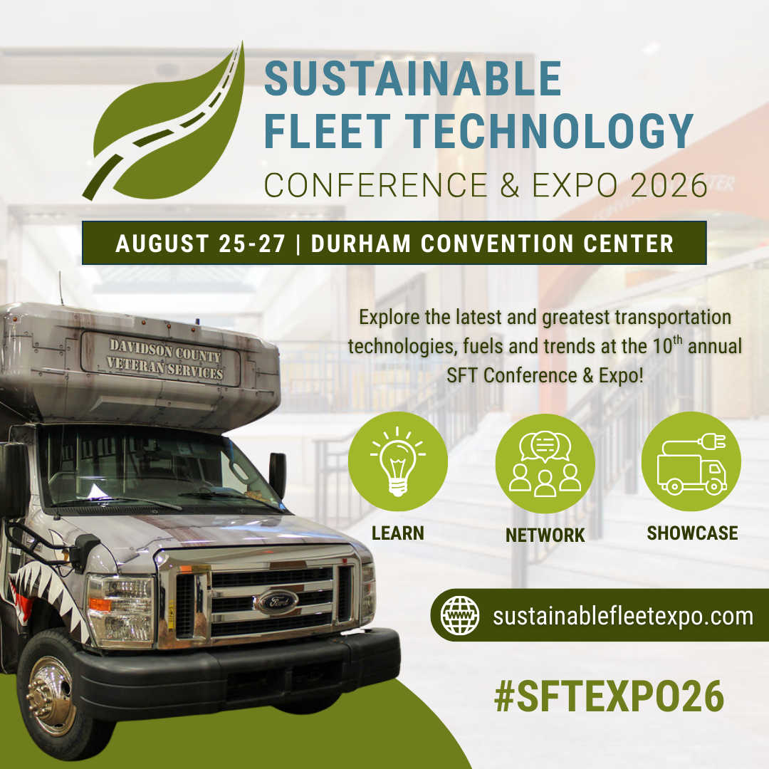 Network with transportation experts and fleet managers at the 2026 SFT Conference & Expo, Aug. 25-27 in Durham, NC. Select “Member of Promo Partner” during registration and type in our name for a reduced rate of $299! www.sustainablefleetexpo.com #SFTexpo26